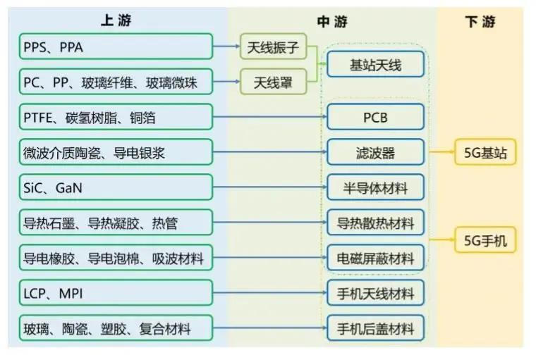 5G关键材料及零部件产业链结构图