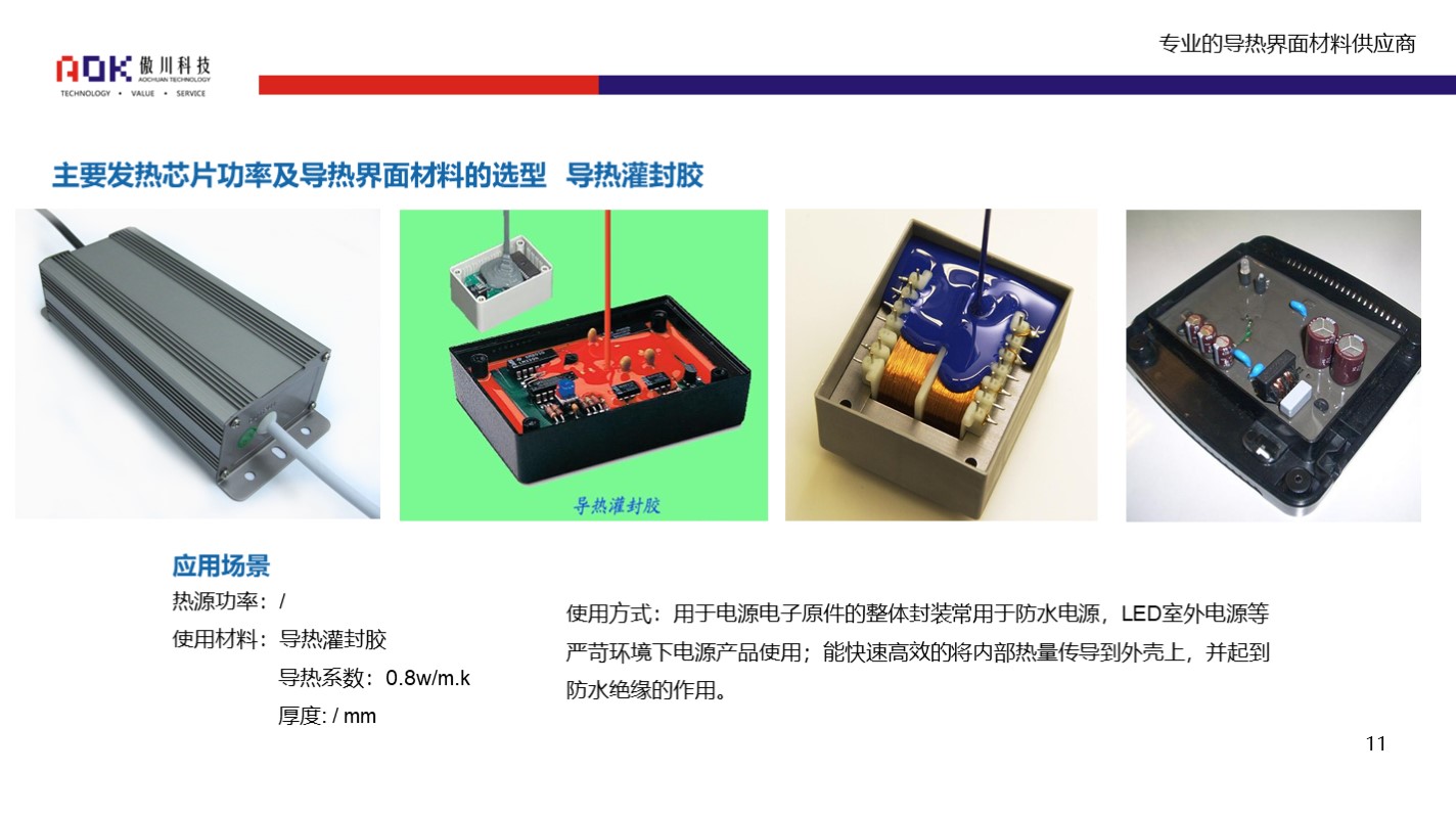 局部灌封一般是发热量较大且集中,其他导热材料又无法替代的情况下选用的方法。整体灌封是因为有些电源长期在户外工作,在解决散热问题的同时,还得考虑电源的防水性、密封性,所以户外电源基本上是采用整体灌封散热。