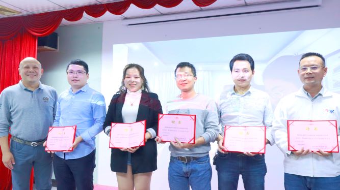 培训结束后,根据相关规则,集训班班主任评定了5位优秀学员(谢觉晖、刘雨华、严业龙、赖慧平、杨婷婷)、2位优秀组长(曾雪英、陈银霞)、1位优秀班长(牟民)、2个优胜小组(扬帆班五组、开拓班一组)及1个优胜班(开拓班),由傲川科技周总经理对以上优秀个体及团体进行颁奖。