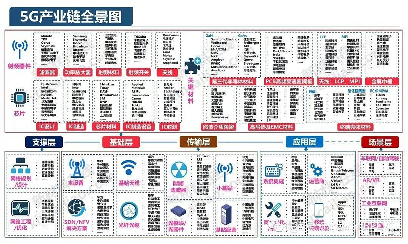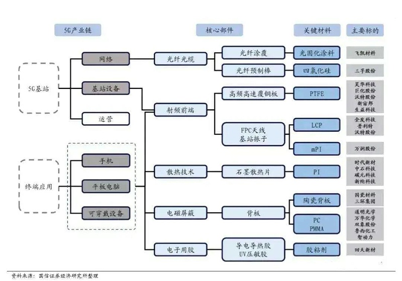 5G关键材料及零部件产业链结构图